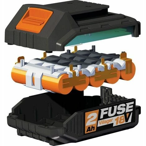 - Batterie 2 ampères heure compatibles avec tous les outils motorisés de la gamme Fuse Villager 18 V.