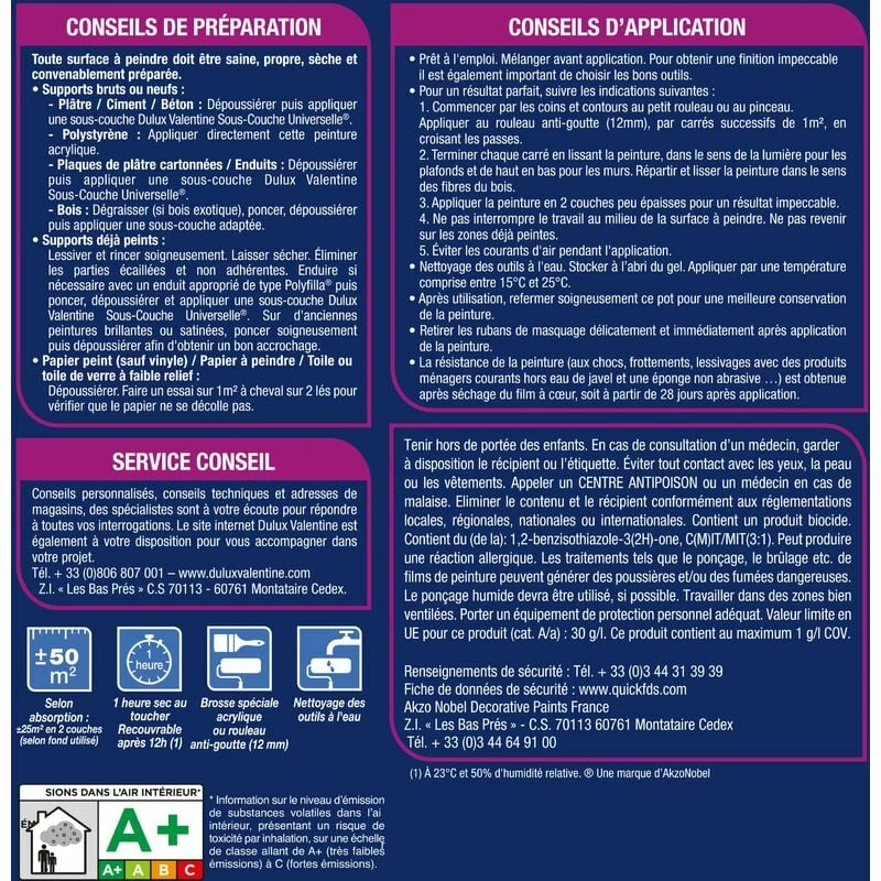 Peinture Acrylique Crème De Couleur DULUX VALENTINE Rouge Glamour 50ml 0,050 L – Rouge Glamour